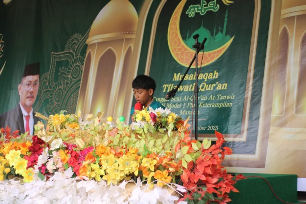 MAN Model 1 Manado — Sanggar Seni Al quran At-Tanwir Madrasah Aliyah Negeri (MAN) Model 1 Plus Keterampilan (PK) Manado melaksanakan kegiatan lomba Musabaqah Tilawatil Quran (MTQ) Tingkat Pelajar se Kota Manado Tahun 2025 yang akan berlangsung dari tanggal 24 – 26 Oktober 2025. Acara pembukaan dilaksanakan pada Hari Jumat (24/10/2025) bertempat di lapangan olah raga MAN Model 1 PK Manado.